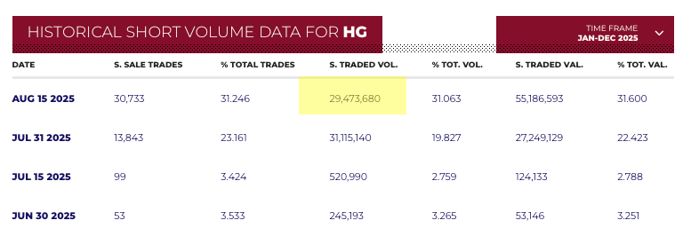 While retail enthusiasm exploded, hedge funds quietly built massive short positions. More than 30 million shares were shorted before August 16th, a staggering figure relative to HydroGraph’s float.