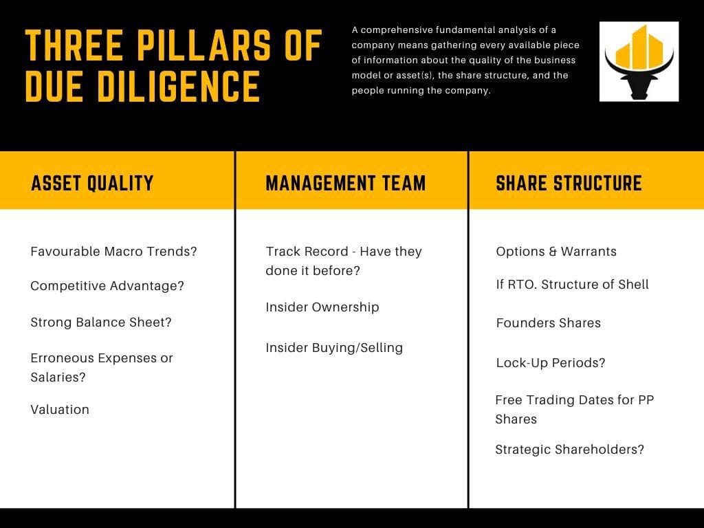 A comprehensive fundamental analysis means gathering every available piece of information about a company, and more specifically, about the quality of the asset or business model, the share structure, and the people running the company.