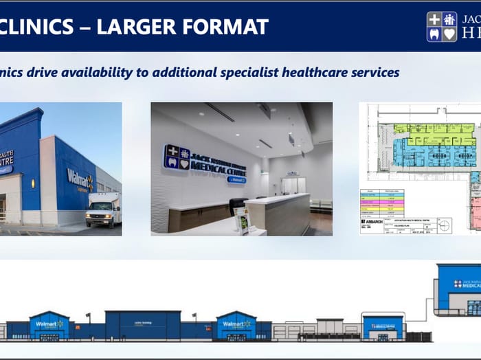 Construction of clinics is subsidized by Walmart. JDH pays little to no rent and also receives a subsidy from Walmart.