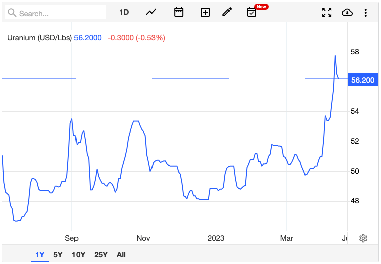Major economies worldwide are also announcing plans to increase nuclear power capacity to strengthen energy security and lower carbon emissions, solidifying expectations of strong uranium-buying activity for decades to come. Consequently, the price of uranium has been steadily rising, recently reaching multi-year highs at $58/lb.