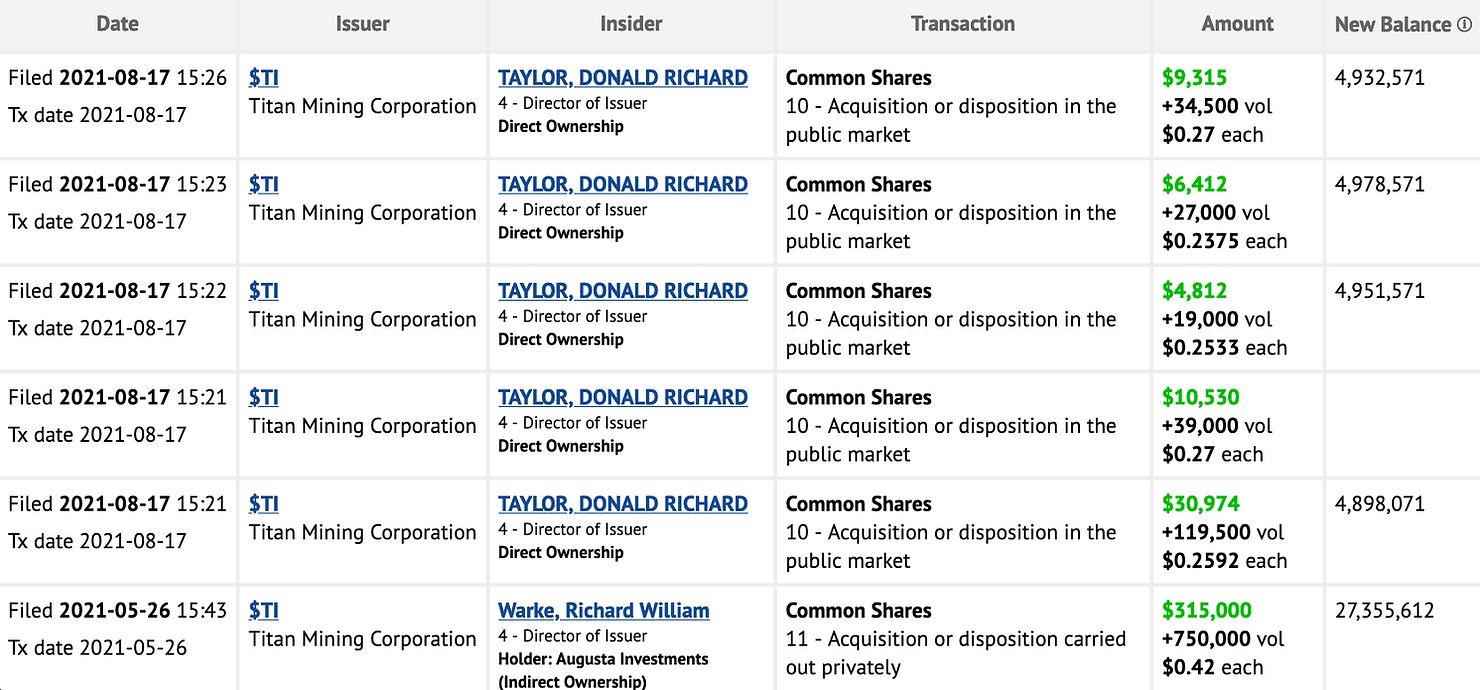 Remember that Titan Mining originally had its IPO at $1.40 and quite a bit of money was raised at that level. So there may still be legacy shareholders who are underwater significantly and just want out.