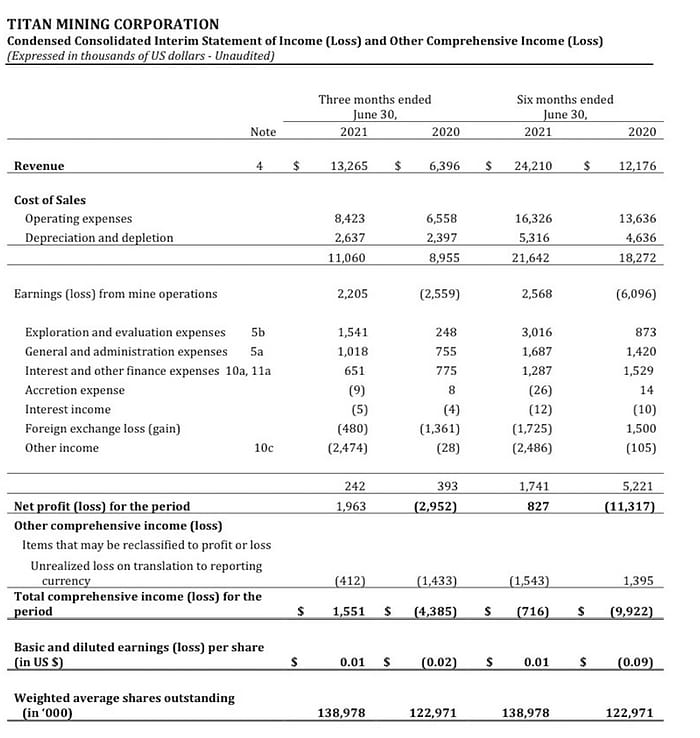 We can see that Titan did $13.2M USD in revenues over the last three months alone.
