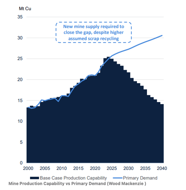 Copper supply shortfalls are predicted to begin in 2025 and last through most of the following decade.