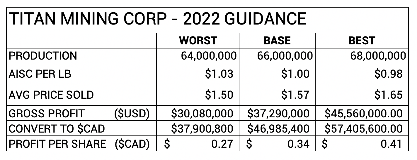 TITAN MINING – ANALYSIS OF RESULTS AND 2022 GUIDANCE