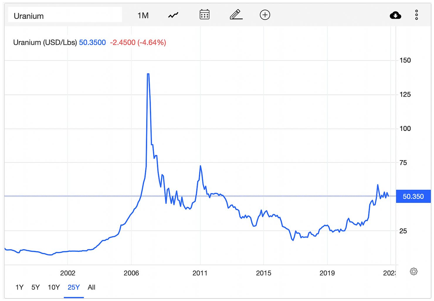 Although, over the last year and a half, the price of uranium has started to regain some of that lost ground, rising from $20 to $50, as society becomes increasingly aware of the importance of nuclear energy’s role in achieving a green economy.